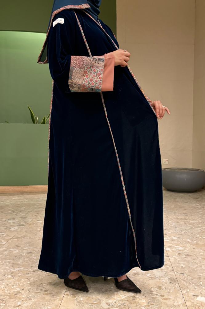 عباية مخمل كوري مع تداخلات
